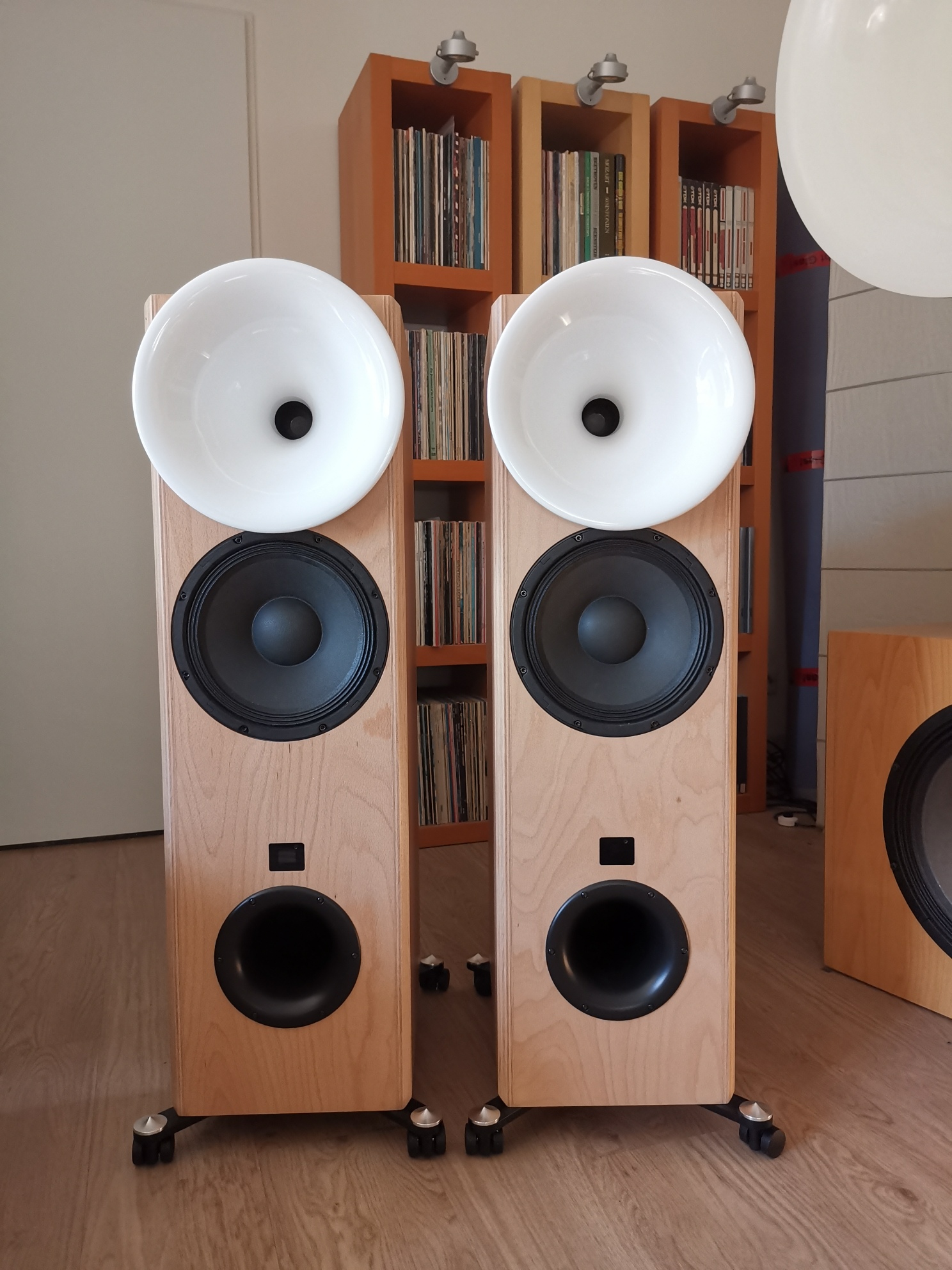 Die Kugelwellenhörner sind weiß glänzend lackiert.