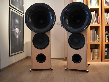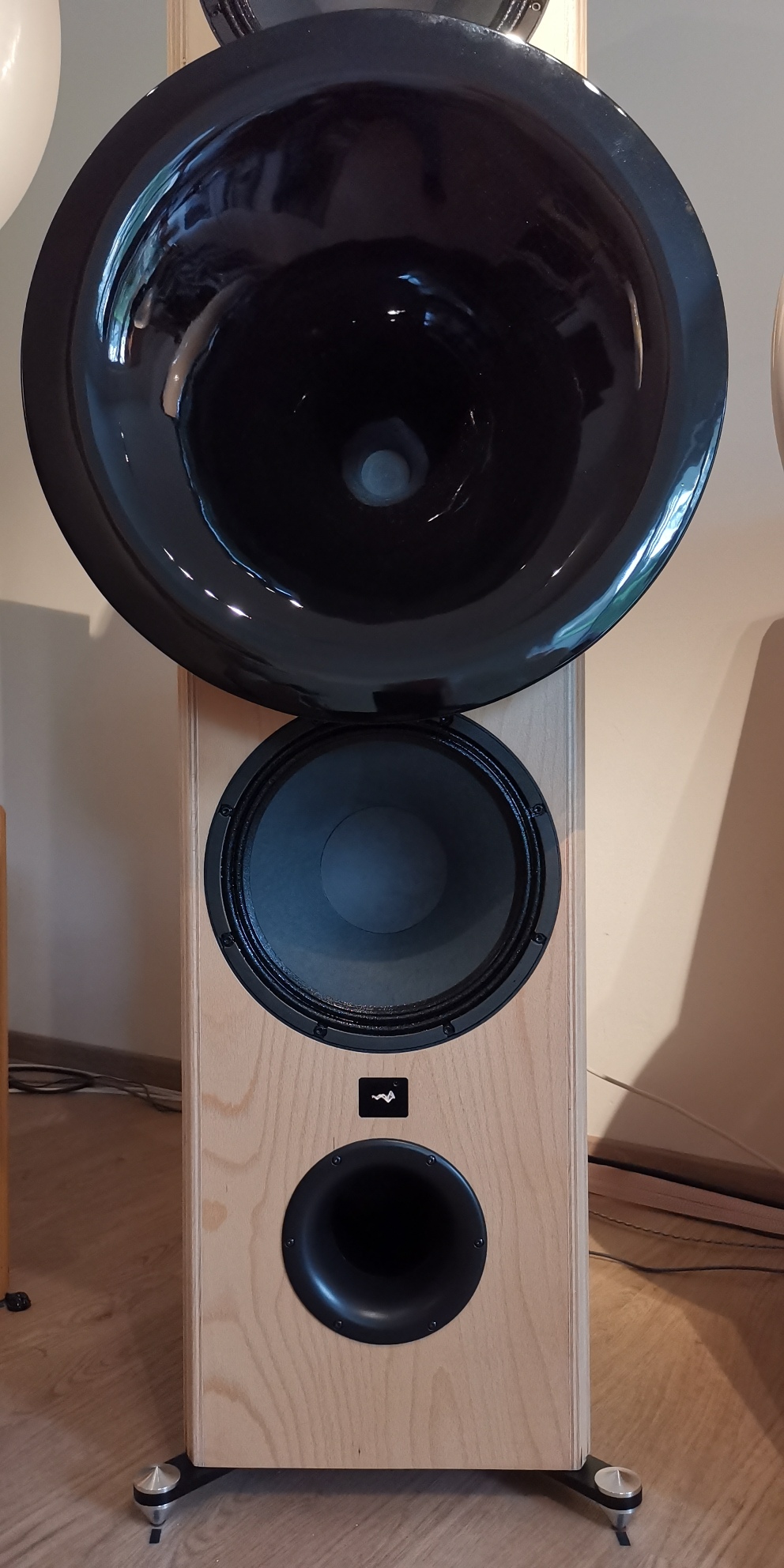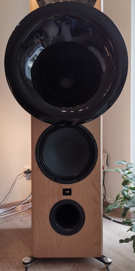 Die Kugelwellenhörner bestehen aus einem sehr resonanzarmen Kunststoff- Glasfasergemisch, klingen NICHT hart, sondern sehr dynamisch und klangfarbenreich bei extrem feiner Auflösung!