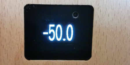 OLED Display zur Statusanzeige und IR-Sensor an der Frontseite.